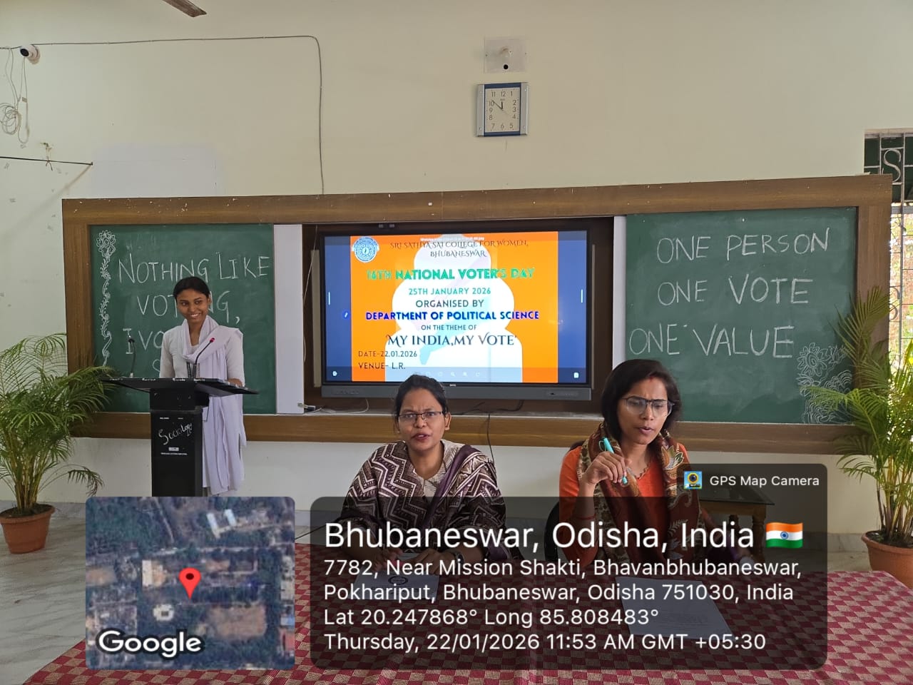 The Department of Political Science celebrated National Voters’ Day on 22 January 2025 in compliance with the Government of Odisha, Department of Higher Education Order No. HE-MC-MISC-006-2025/3342. The programme was organized with the objective of creating awareness among students about the importance of voting in a democratic polity, in line with the theme “My India, My Vote.”
